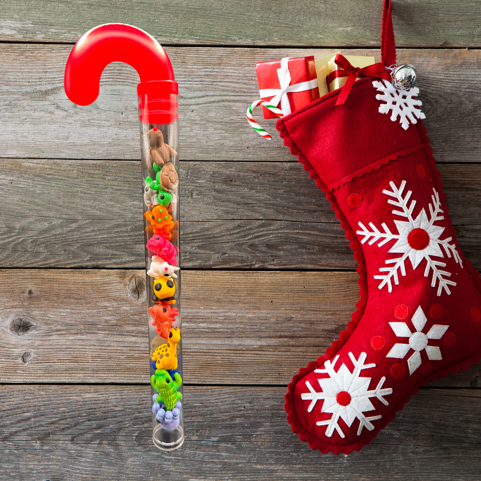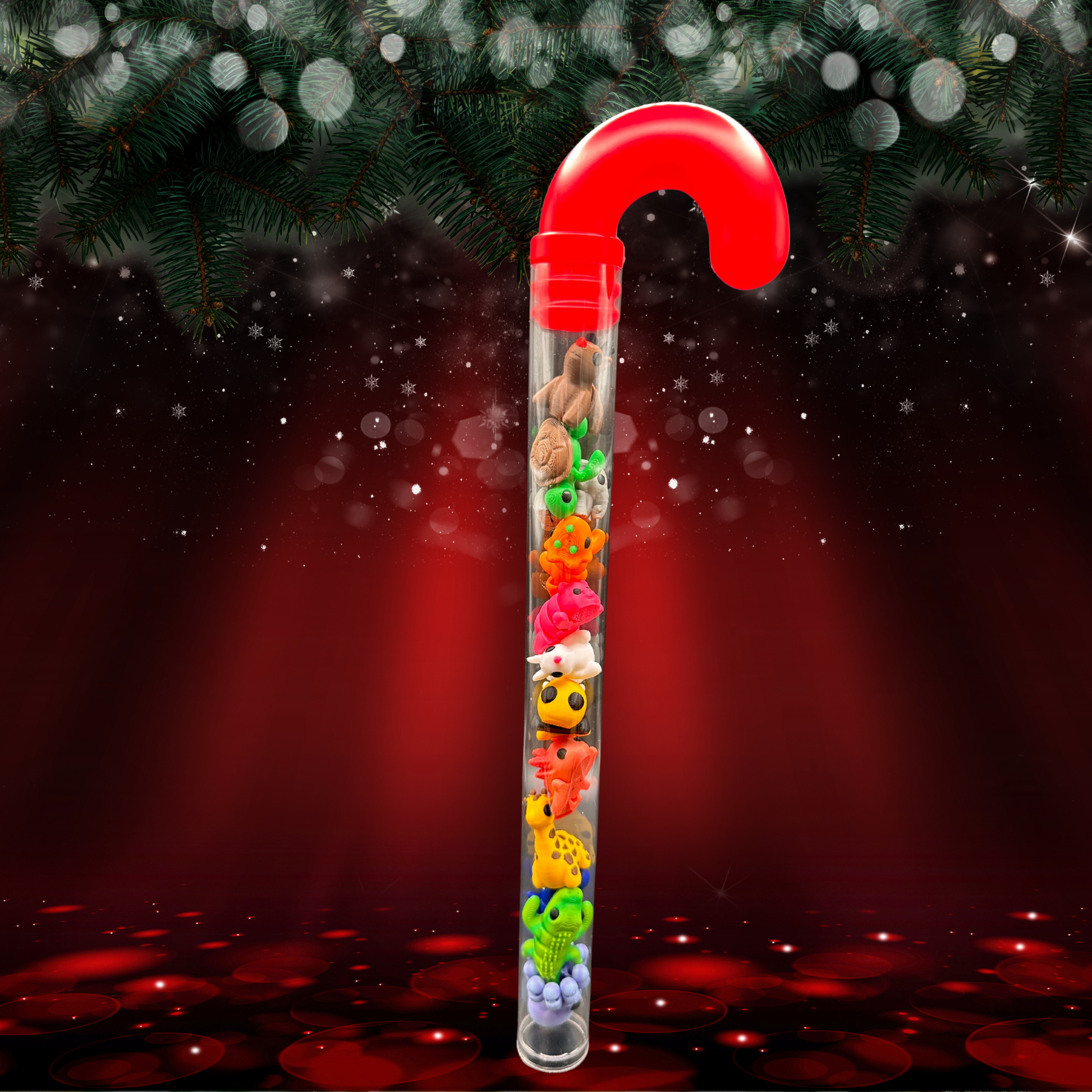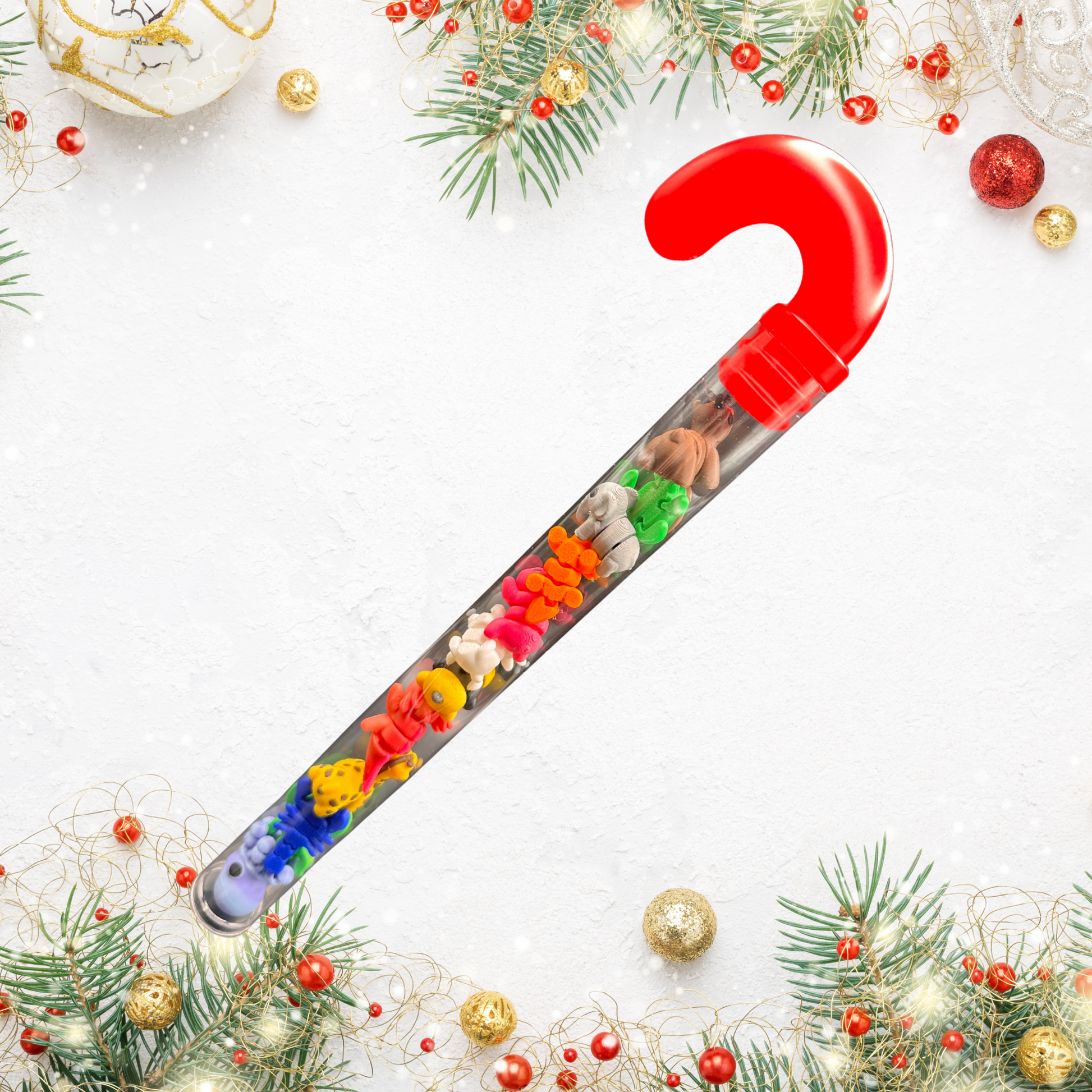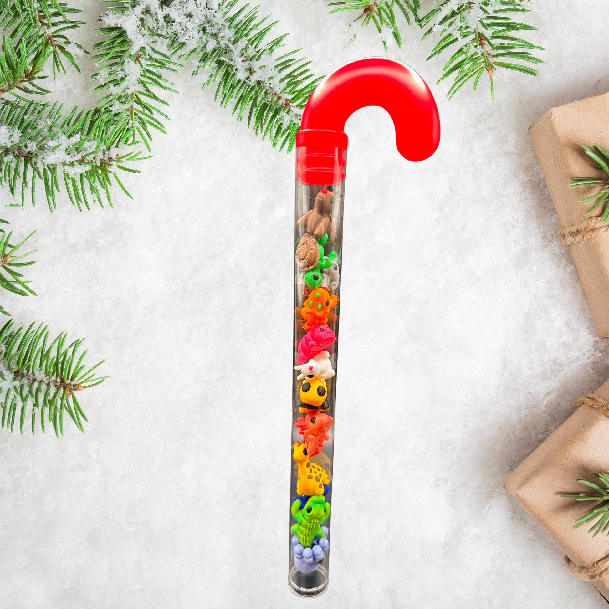 Unwrap the cutest surprise of the season! This candy cane shaped tube is packed with 12 mini 3D printed animals. Adorable, Collectible and ready to make anyone smile. Perfect as a holiday gift, stocking stuffer, or desk buddy for animal lovers of all ages.